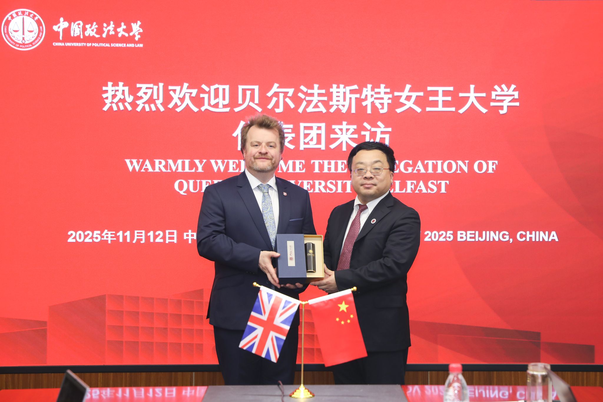 11月12日上午,副校长于飞在海淀校区会见来访的英国贝尔法斯特女王大学(以下简称“女王大学”)协理副校长罗宾·希基(Robin Hickey)一行。