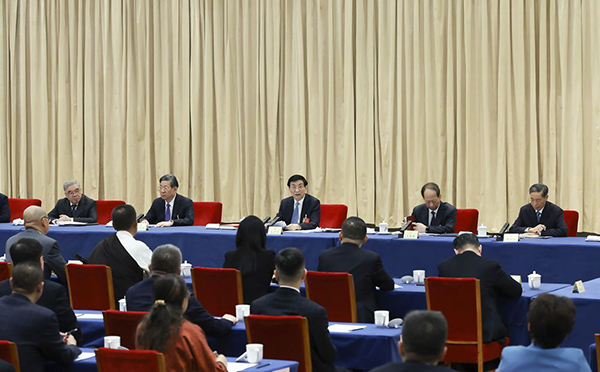3月6日上午,中共中央政治局常委、全国政协主席王沪宁参加全国政协十四届四次会议文化艺术、体育界委员联组会。
